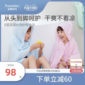 儿童浴巾中大童浴袍男孩女童斗篷带帽可穿比纯棉吸水卡...