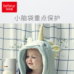 儿童浴巾带帽斗篷新生婴儿洗澡纯棉秋冬厚款宝宝冬天吸...