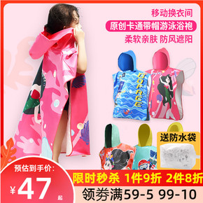 速干浴袍儿童海边沙滩游泳毛巾女 旅行吸水连带帽浴巾...