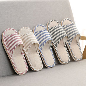 客用拖鞋春秋季室内居家男女士家用木地板轻便亚麻棉泡...