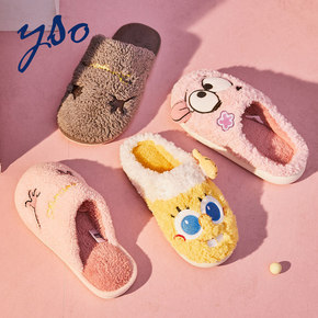 现货绵宝宝居家棉拖鞋冬款情侣包跟室内地板拖鞋卡通玩...