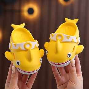 夏季可爱卡通鲨鱼宝宝洞洞凉拖包头小童男童女童小孩防...