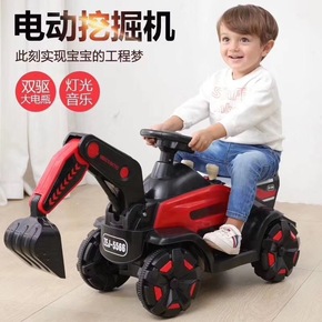 新款儿童电动挖掘机玩具车可坐可骑遥控大号电动挖土机...