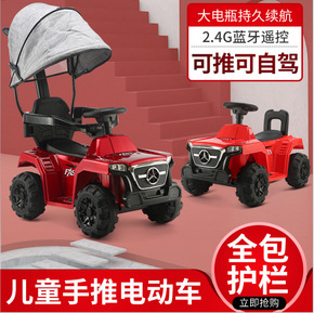 新款儿童带推把电动沙滩四轮遥控汽车越野车男女宝玩具...