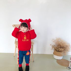 【清仓款不退不换】22婴童男女刺绣连帽加绒喜庆过年...