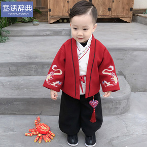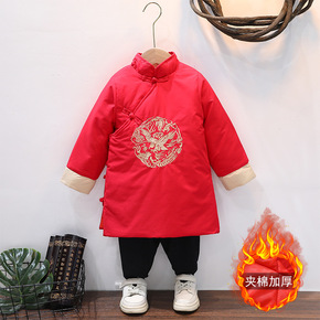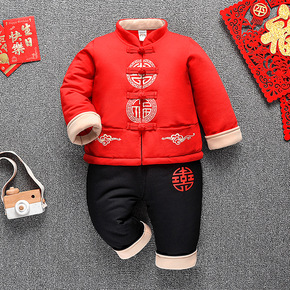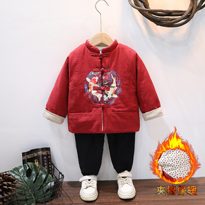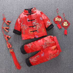 拜年服宝宝男冬季加厚男孩红色过年儿童风新年装男童唐...