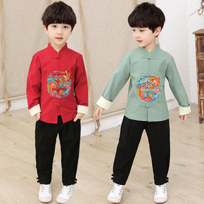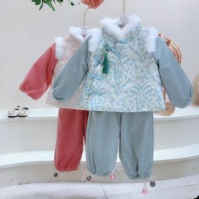 男童新年衣服过年加绒汉服秋冬套装风唐装加厚礼服元旦...