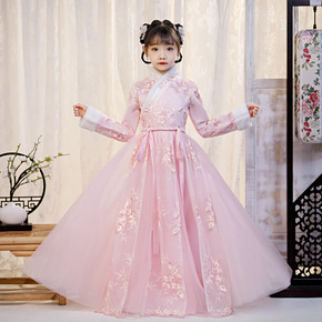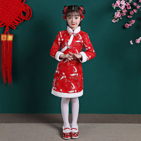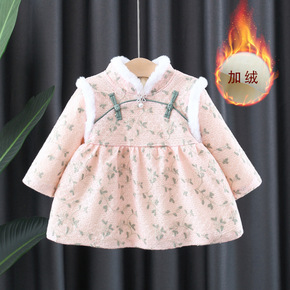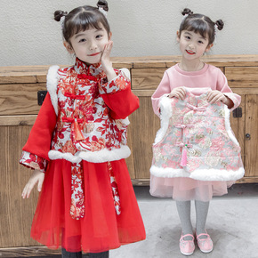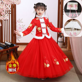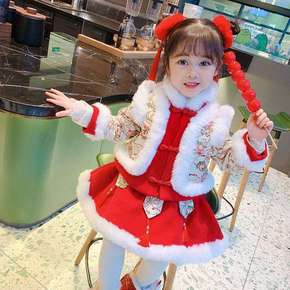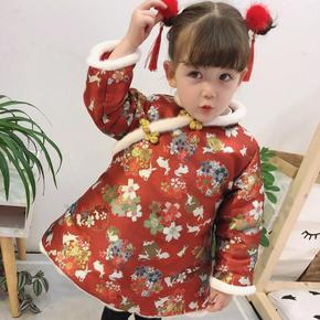 2020秋冬女童红色喜庆风汉服旗袍拜年服宝宝周岁唐...