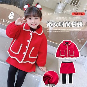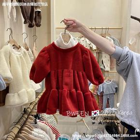 小童装女童宝宝秋装新年衣服0-1-3岁红色婴儿公主...