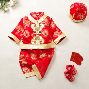 一周岁宝宝衣服男童红色拜年服婴儿礼服抓周服百岁唐装...