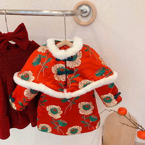 2021冬季新品女宝宝民族风棉服可爱拜年服女童中国...