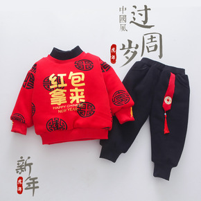 拜年服宝宝男冬季风小男孩喜庆过年加厚儿童新年男童唐...
