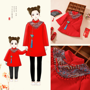 婴儿拜年服冬装儿童汉服风亲子母女旗袍过年宝宝礼服女...