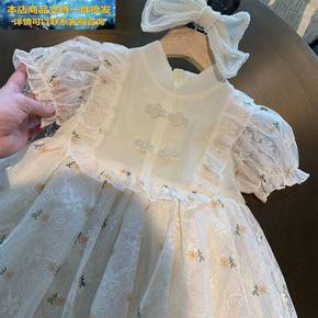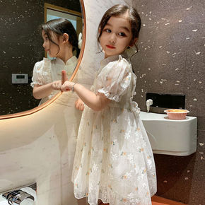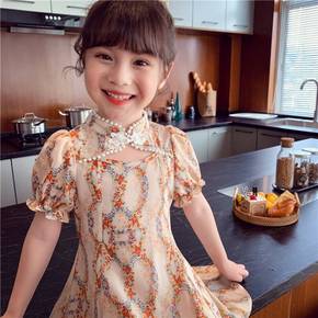 女童旗袍裙子风中大童公主裙洋气儿童装汉服夏季泡泡袖...