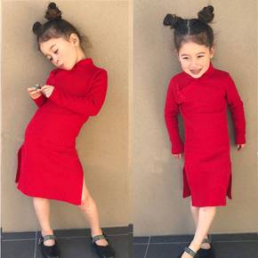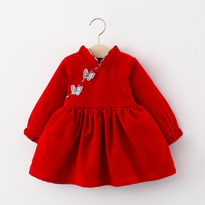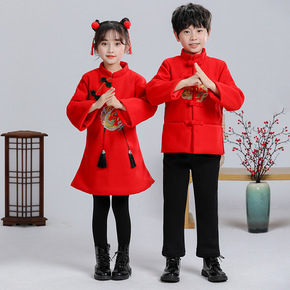 喜庆开门红加绒演出服 男女宝宝新年拜年服 女童旗袍...