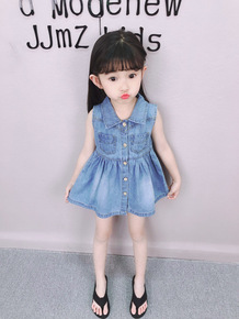 女童连衣裙2022夏装新款女宝宝2洋气牛仔公主裙无...