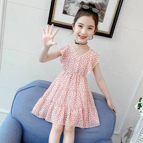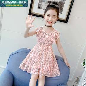 2021夏女童棉绸连衣裙飞袖碎花5-16岁儿童人造...