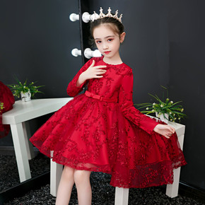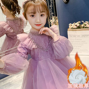 女童加绒蕾丝连衣裙2022秋冬新款儿童纱裙中大童甜...