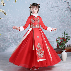 女童唐装冬季过年衣服古装汉服加绒加厚拜年服风喜庆复...