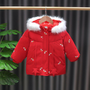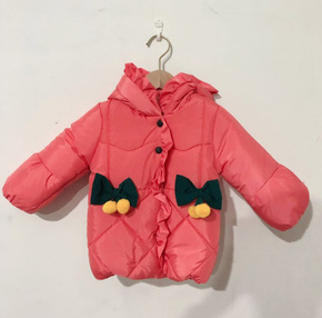 新款女童棉衣 新品欧美多花色印花可爱连帽棉袄 长款...