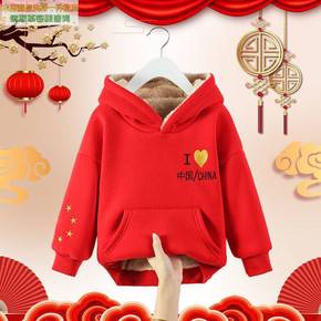 男童棉秋冬装拜年服女童冬季卫衣宝宝中小童加厚连帽加...