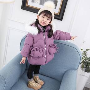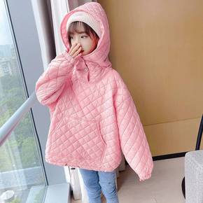 女童棉服2021秋冬新款韩版洋气轻薄连帽羽绒棉衣中...