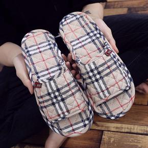 新款棉布居家室内布艺布底拖鞋情侣男女静音不伤地板春...
