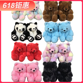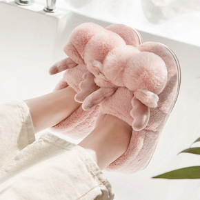 新款企鹅毛绒家居拖鞋火烈鸟亲子保暖棉靴卡通兔子室内...
