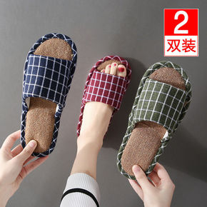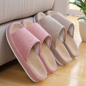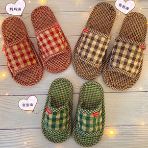儿童不扰民夏季亚麻防滑布底拖鞋室内情侣家居亲子一家...