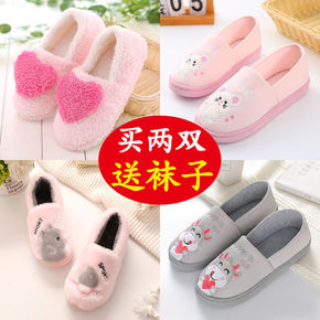 家用棉拖鞋女冬家居包跟可爱毛绒室内产后月子鞋秋冬天...