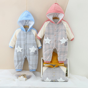 宝宝保暖套装夹棉新生儿衣服冬0-3月加厚冬装初生婴...