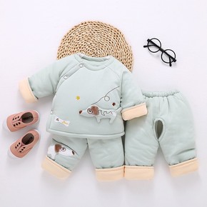 包邮婴儿宝宝衣服春秋冬保暖套装男女童夹棉加棉衣棉袄...
