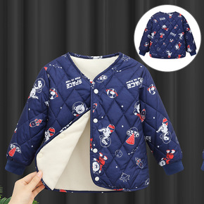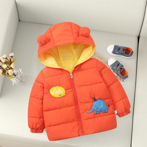21秋韩版外贸童装 方标卡通头像连帽奥粒绒男童外套...