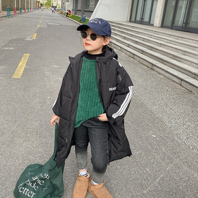聪小妹2021冬款 男女童中长款加厚连帽羽绒棉服外...