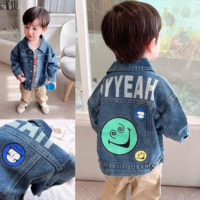 儿童外套韩国童装2022春季新款韩版男童笑脸连帽上...