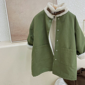 鹿小鹿女童外套冬季新款儿童加绒加厚羊羔毛大衣外套男...