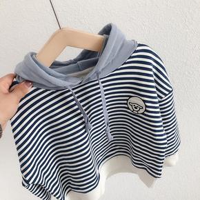儿童条纹帽衫2022新款春秋男女童文艺范百搭卫衣中...