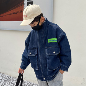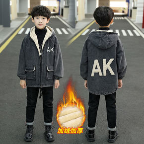 童装男童牛仔外套秋冬款2021新款帅气加绒加厚风衣...