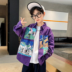 1105男童外套秋季新款童装儿童中大男童印花翻领休...