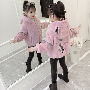 女童毛毛衣2020秋冬新款儿童中大童韩版加厚保暖卡...
