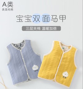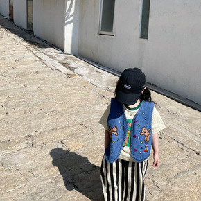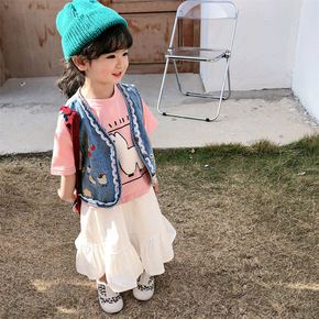 2022春秋装新款韩版女宝宝牛仔马甲儿童柔软背心坎...