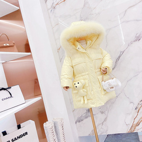 女童棉衣 2021冬季新款韩版中大童儿童大毛领中长...