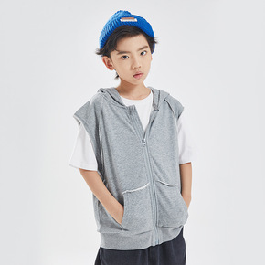 DK春秋街舞男童卫衣外套中大童儿童外穿连帽针织马甲...