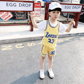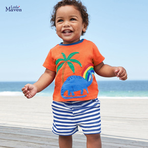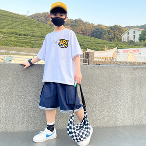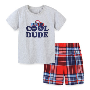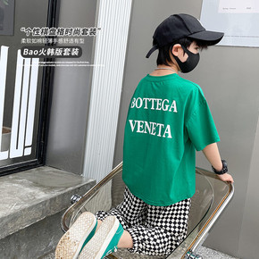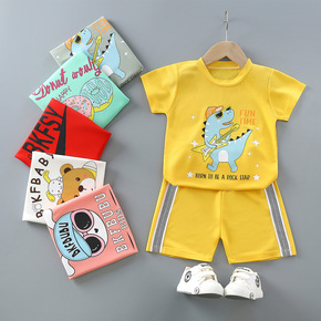 22欧美风男童套装夏季新品儿童T恤套装短袖针织棉卡...