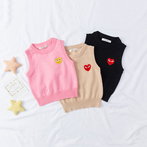 现货童装秋款 男女童爱心马甲毛线背心兔绒苞芯纱毛衣...