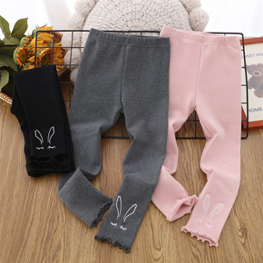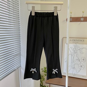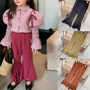 女童裤子前开叉木耳边打底裤喇叭裤22春秋装新款外贸...