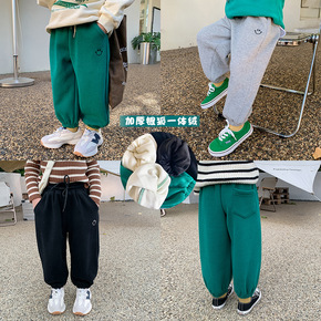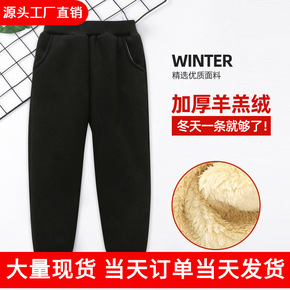 WK3023 LM儿童加绒裤子冬季运动裤羊羔绒男女...