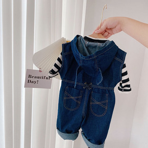 秋款韩版男女童无袖连帽个性连体衣 女宝宝以为打底衫...