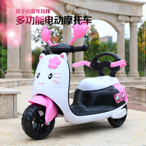 儿童电动摩托车三轮车小孩可坐玩具车男女宝宝KT猫电...