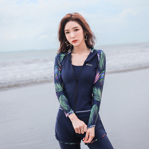 韩国新款潜水服女分体防水母冲浪浮潜五件套装游泳衣女...